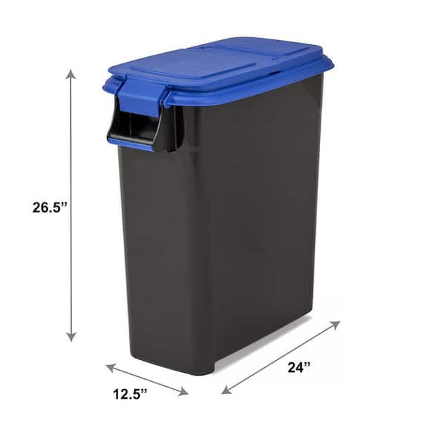 Keep your charcoal fresh, dry and ready to use when stored inside the Kingsford EXTRA-LARGE Charcoal Storage container. This unique, over-size storage unit is designed to handle up to 55 lb of briquettes, lump charcoal or wood chips. Made in the USA with up to 75% recycled plastic, this heavy- duty, all-weather storage solution features a gasket-sealed flip top lid, secure lid clamps, and a pair of semi-recessed wheels for easy tilt-and-roll mobility.