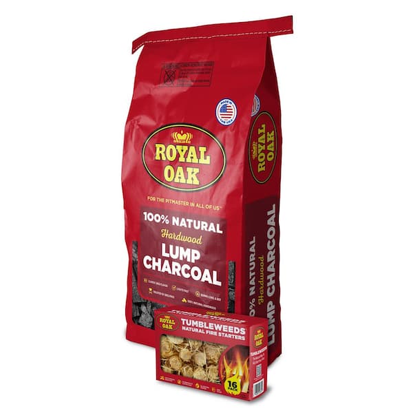 Enjoy this perfect combo pack of our Royal Oak Natural Lump Charcoal and our Royal Oak Tumbleweeds Firestarter for your next grilling experience. Our lump charcoal burns long and hot, lights fast and is 100%. Our Tumbleweeds Firestarter is all natural, easy to use and is a great alternative to lighter fluid.
