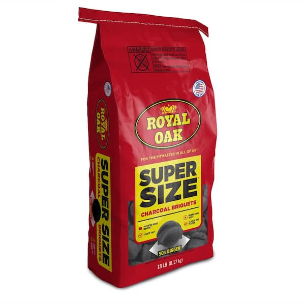 Super Size Charcoal Briquets are Royal Oak’s biggest ridge briquet! Super Size briquets light fast, with high heat and a long burn time for the ultimate grilling experience. Give your food that classic smoky, wood-fired BBQ flavor you know and love. Made in the USA from the finest hardwoods and featuring our patented fast-start ridge design for superior air flow and consistent temperatures. Perfect for grilling at high temperatures and for low & slow smoking. Works great in charcoal grills and smokers.