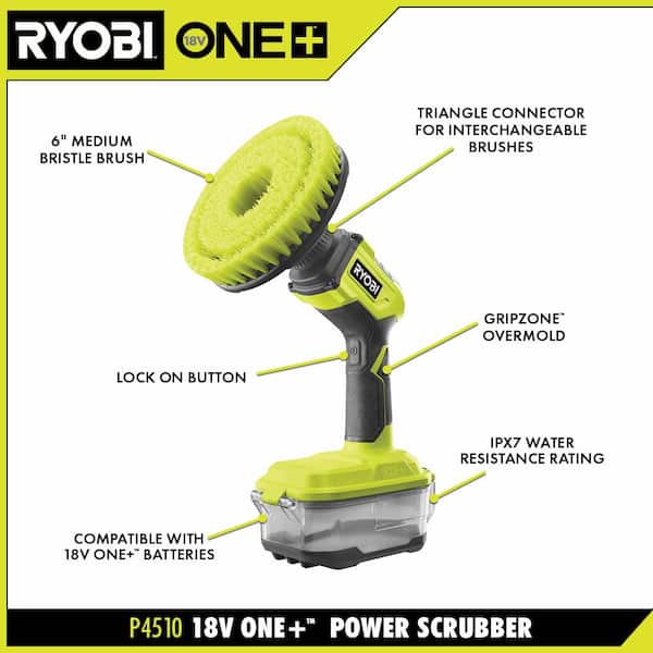 RYOBI ONE+ 18V Lithium-Ion Kit with 2.0 Ah and 4.0 Ah Batteries, Charger with FREE ONE+ 18V Cordless Power Scrubber PSK106SB-P4510