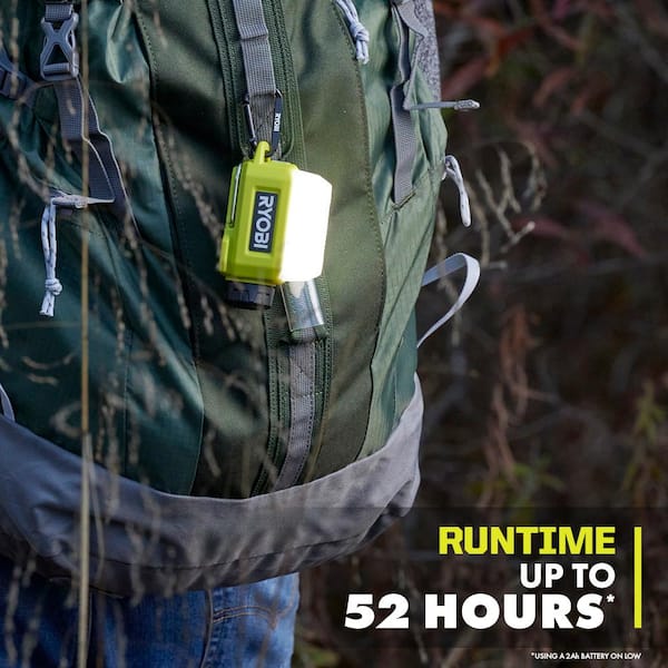 The RYOBI USB Lithium LED Compact Area Light Kit provides illumination in a durable and space saving design. With up to 300 Lumens, this compact area light can easily light up any environment hands-free with folding metal hanging hook, included carabiner and RYOBI LINK Wall Storage compatibility. Never be left in the dark in emergency situations with 52 hours of continuous runtime using the included USB Lithium 2Ah Battery on low. The IP54 dust and water resistance rating ensure this light is a reliable solution built to withstand even the toughest conditions. The included USB Lithium 2Ah battery features a USB-C port that also charges mobile devices, and a LED fuel gauge that clearly indicates the battery level status with the press of a button, eliminating guess work. The product also features an LED indicator to signal when the battery is charged (green) or has low battery (red) while in-use. Best of all, it is part of the RYOBI USB Lithium System of tools that provides compact, rechargeable, everyday solutions for cordless power and productivity. This USB Lithium LED Compact Area Light Kit is backed by the RYOBI 2-Year Manufacturer’s Warranty and includes FVL59 LED Compact Area Light, USB Lithium 2Ah Battery, USB Cable and Operator’s Manual.