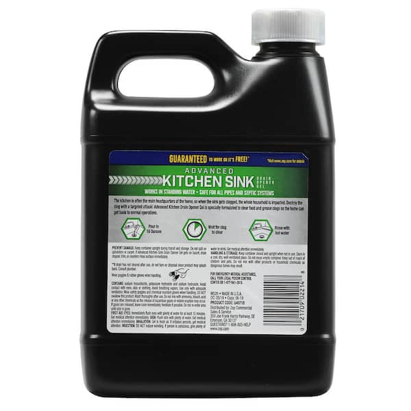 The kitchen is the main headquarters of the home, so when the sink gets clogged, the whole household is impacted. Destroy the clog with a targeted attack Advanced Kitchen Drain Opener Gel is specially formulated to clear food and grease clogs so the home can get back to normal operations. This drain opener targets food, grease, oil and other common clog causers within your kitchen sink.